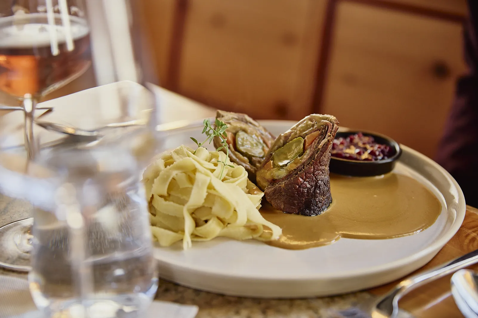 Geschnetzeltes vom Reh mit Champignon und Spiralen
